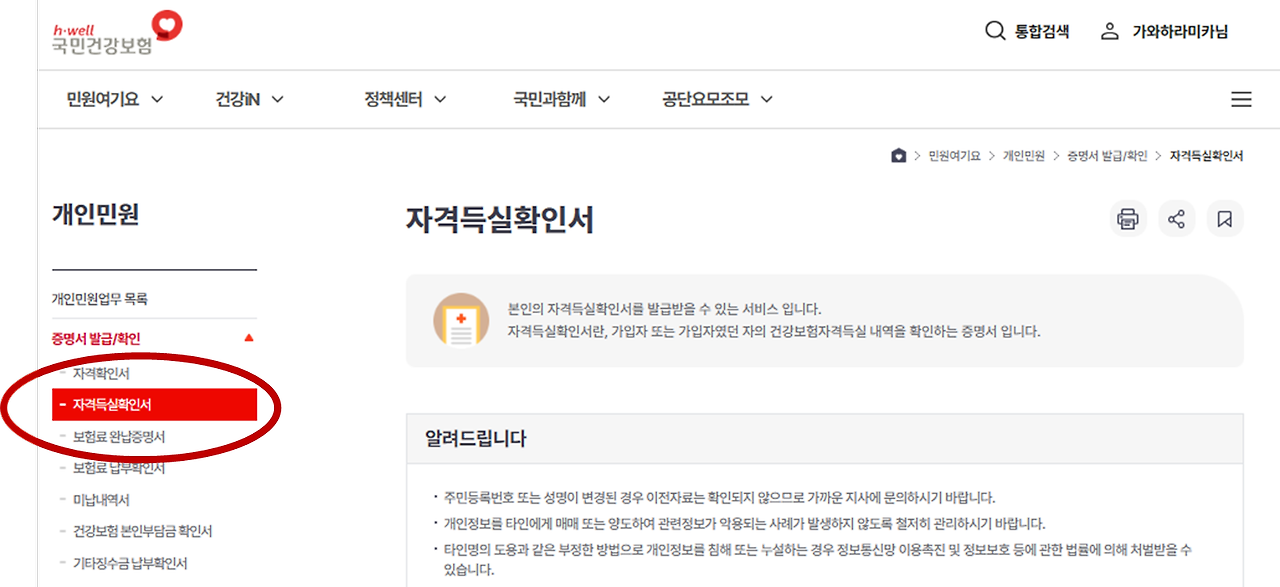 제가 어떤 기관에 신청해야 할 것이 있어서 제출서류를 알아봤는데 그중에 "건강보험자격득실확인서"라는 서류를 준비하라고 나와있었어요… 음.... 이것 뭐지?